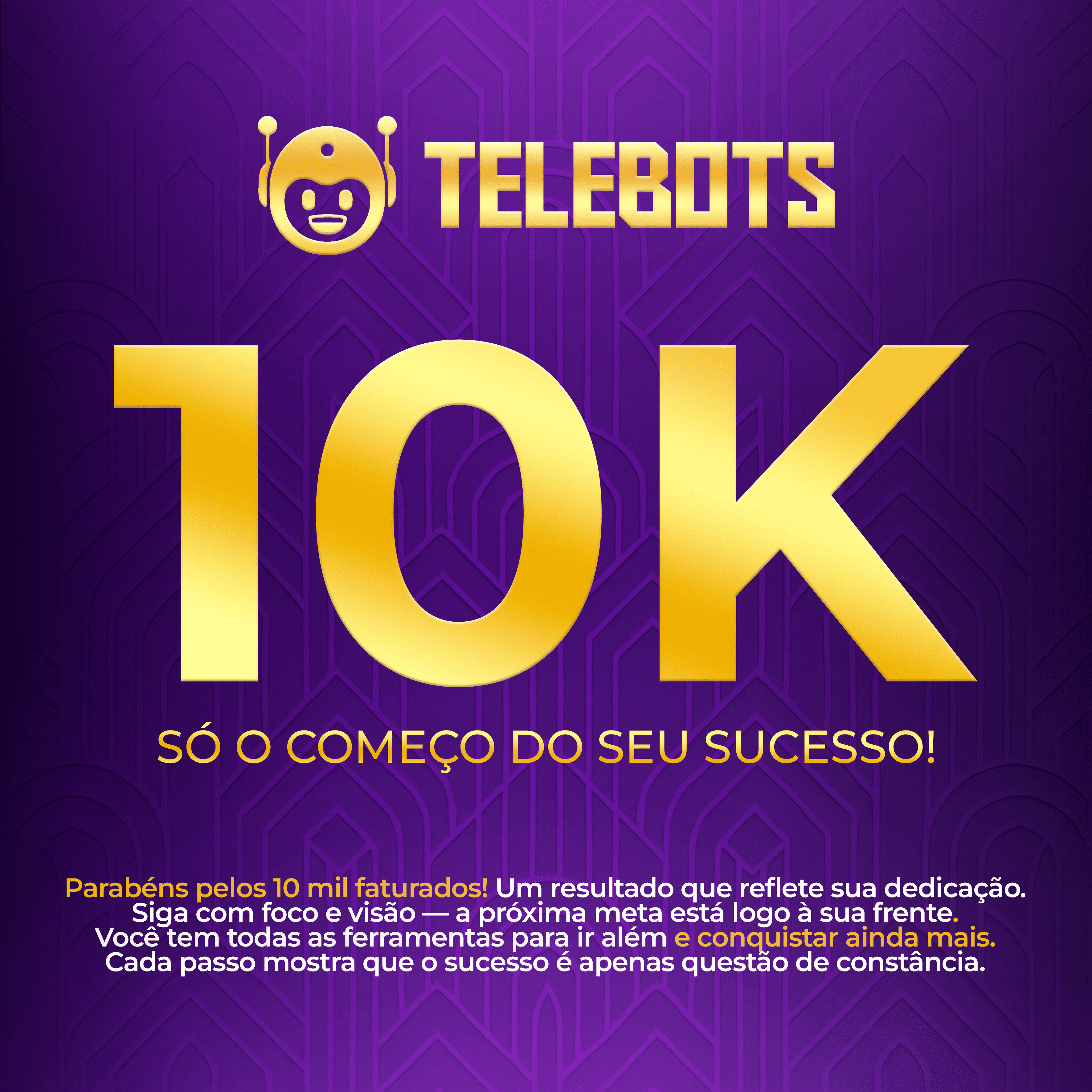Parabéns pelos 10 mil faturados! Um resultado que reflete sua dedicação. Siga com foco e visão - a próxima meta está logo à sua frente Você tem todas as ferramentas para ir além e conquistar ainda mais. Cada passo mostra que o sucesso é apenas questão de constância.